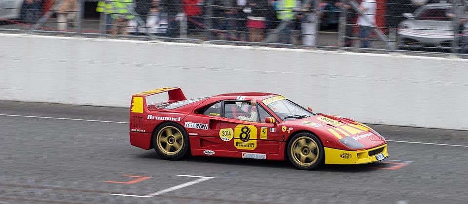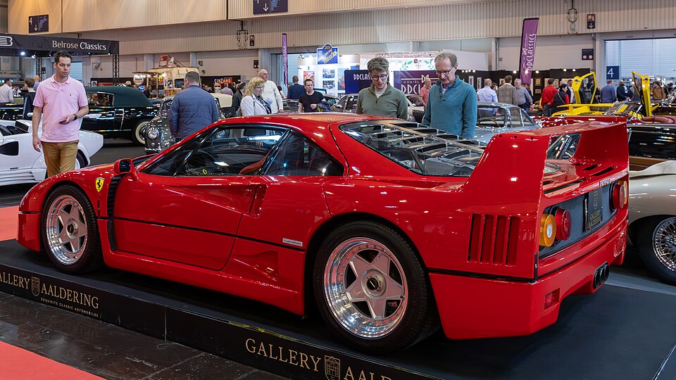 • Chassis & Dynamics: Tubular steel spaceframe chassis with a composite body of Kevlar, carbon fiber, and fiberglass. Double wishbone suspension all around, no active systems, no driver aids. The F40 communicates everything — every surface, every slip angle, every gust of crosswind — directly and honestly through the steering and seat. It is one of the last great analog supercars, and arguably the most pure.